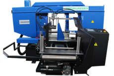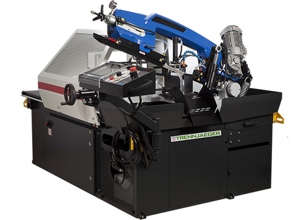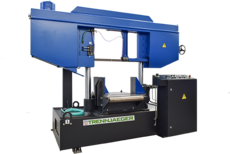 Scies à ruban horizontales à double onglet d'un côté ou des deux côtés, manuelles ou semi-automatiques avec des capacités de 235 à 500 mm.