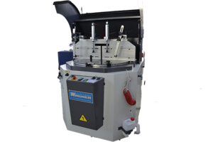 Die linear geführte Unterflur-Kreissäge ist ideal für Gerad- und Gehrungsschnitte. Sie ist beidseitig von 90° über 45° auf 30° schwenkbar.
