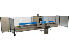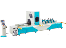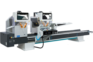 Trennjaeger Single-Kopf Fräsen Modelle BFM 4320; BFM 4420, BFM 7510 mit automatischen pneumatischen Anschlägen zur Positionierung von 2 Werkstücken.